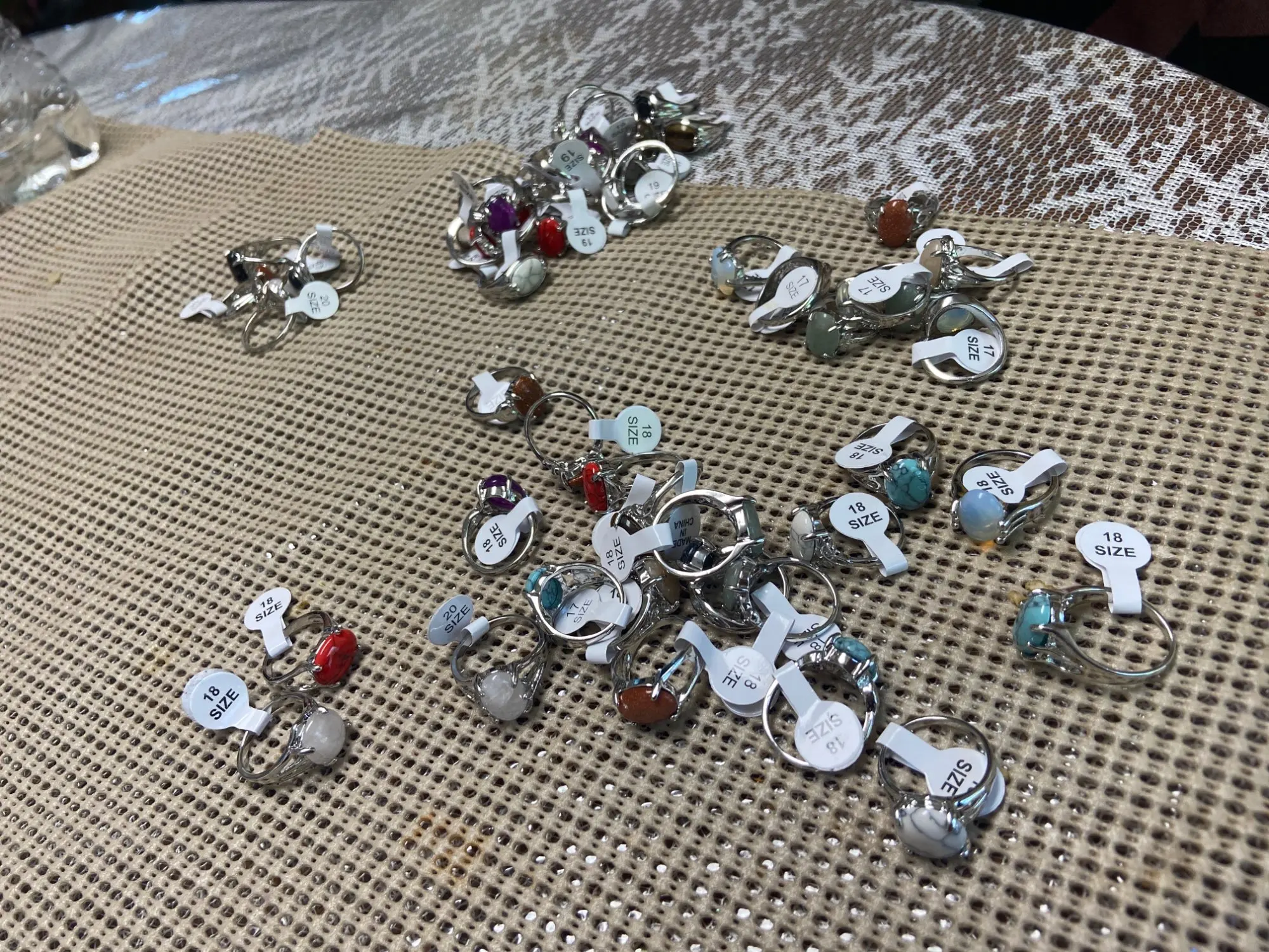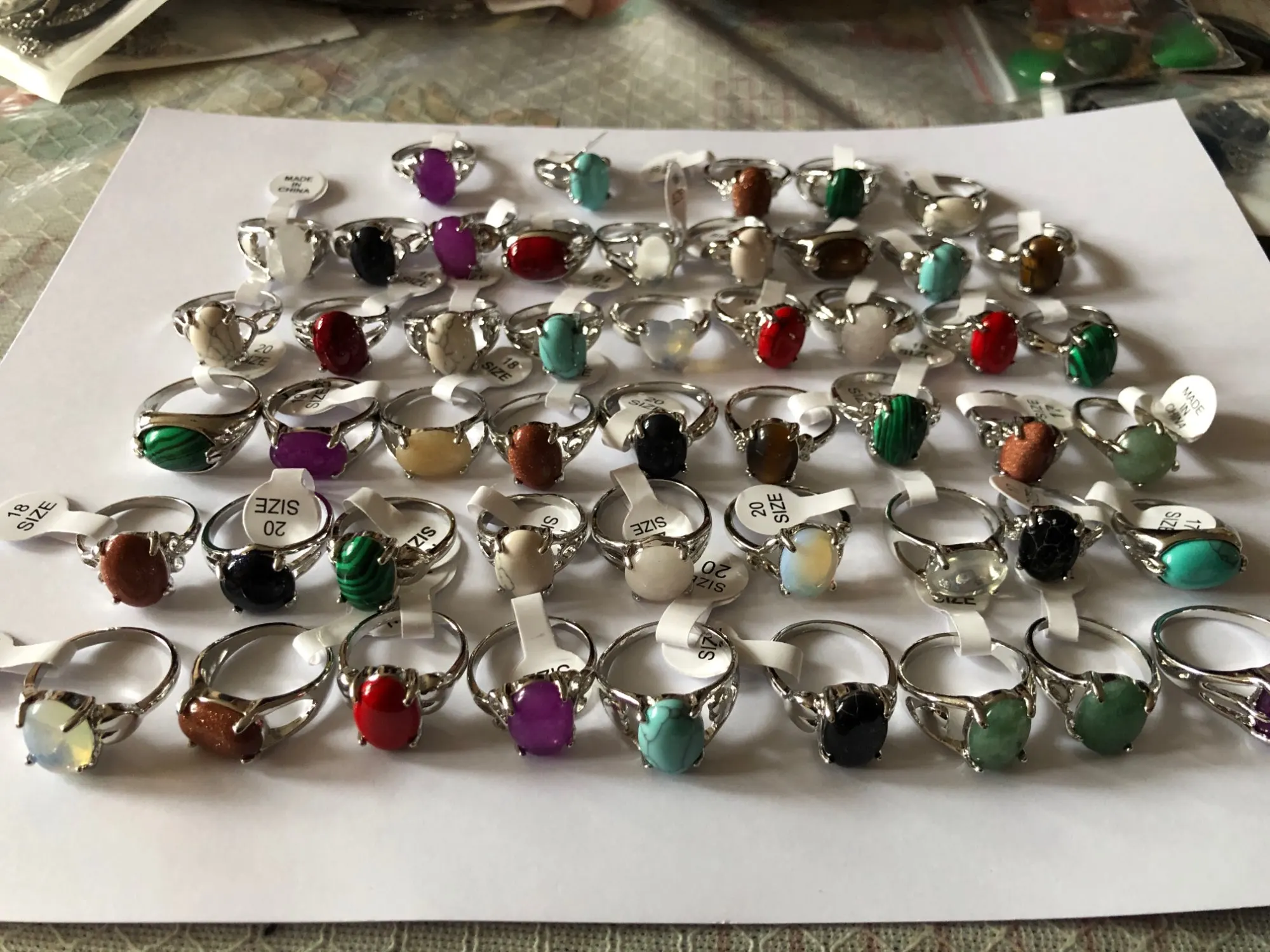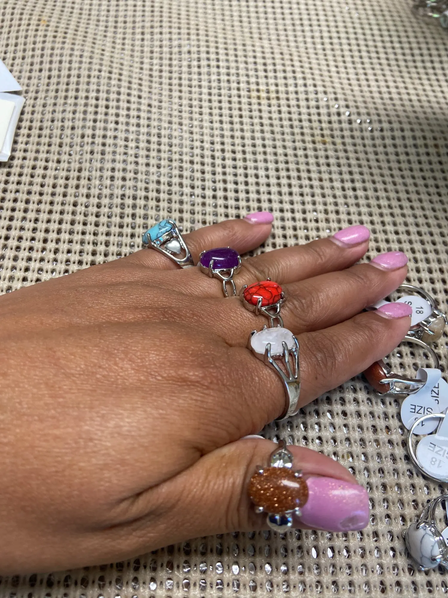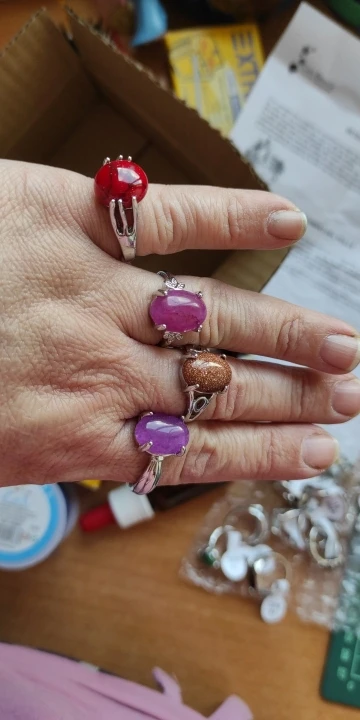 Хорошие кольца, качеством довольна, много видов и размеров, все камни на месте, размеры в основном от 17 до 19, пару штук 20-21.