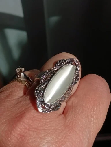 Шикарный комплект получился, реально как на фото. Стоит проба, но это не серебро. 7размер на русский 16,5 свободно село. Спасибо продавцу, рекомендую
