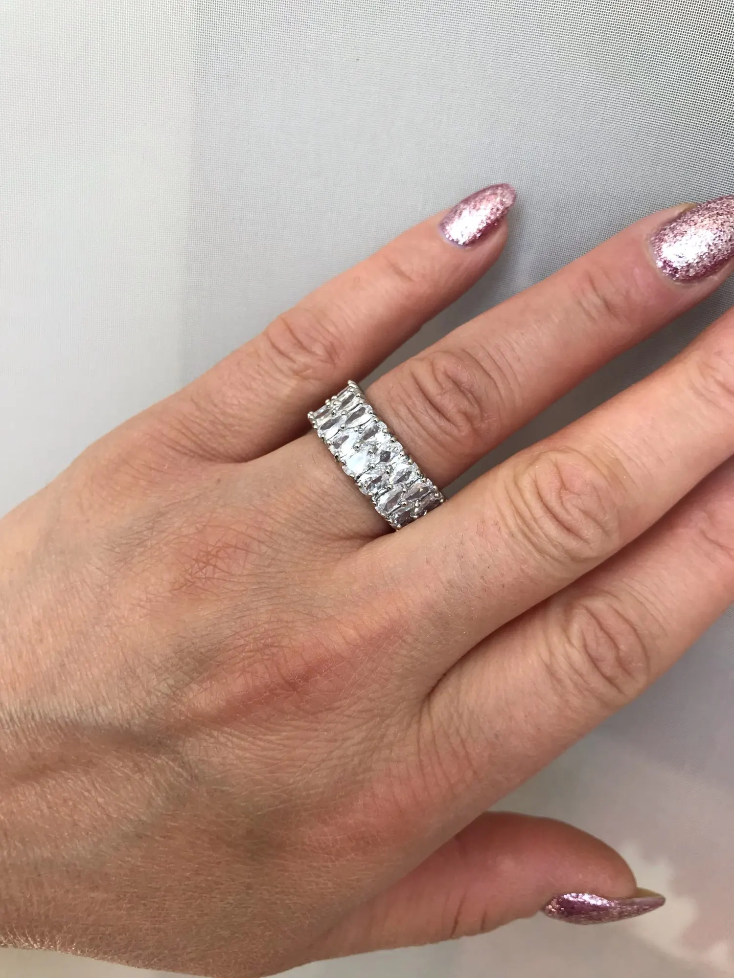 Кольцо просто шикарное. Камни очень сверкают, нарядное. Пришло в расчетное время. Рекомендую и товар, и продавца