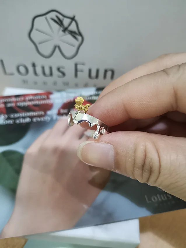 Женское кольцо с Пчелкой и капающим медом Lotus Fun, дизайнерское ювелирное изделие ручного изготовления из настоящего серебра 925 пробы