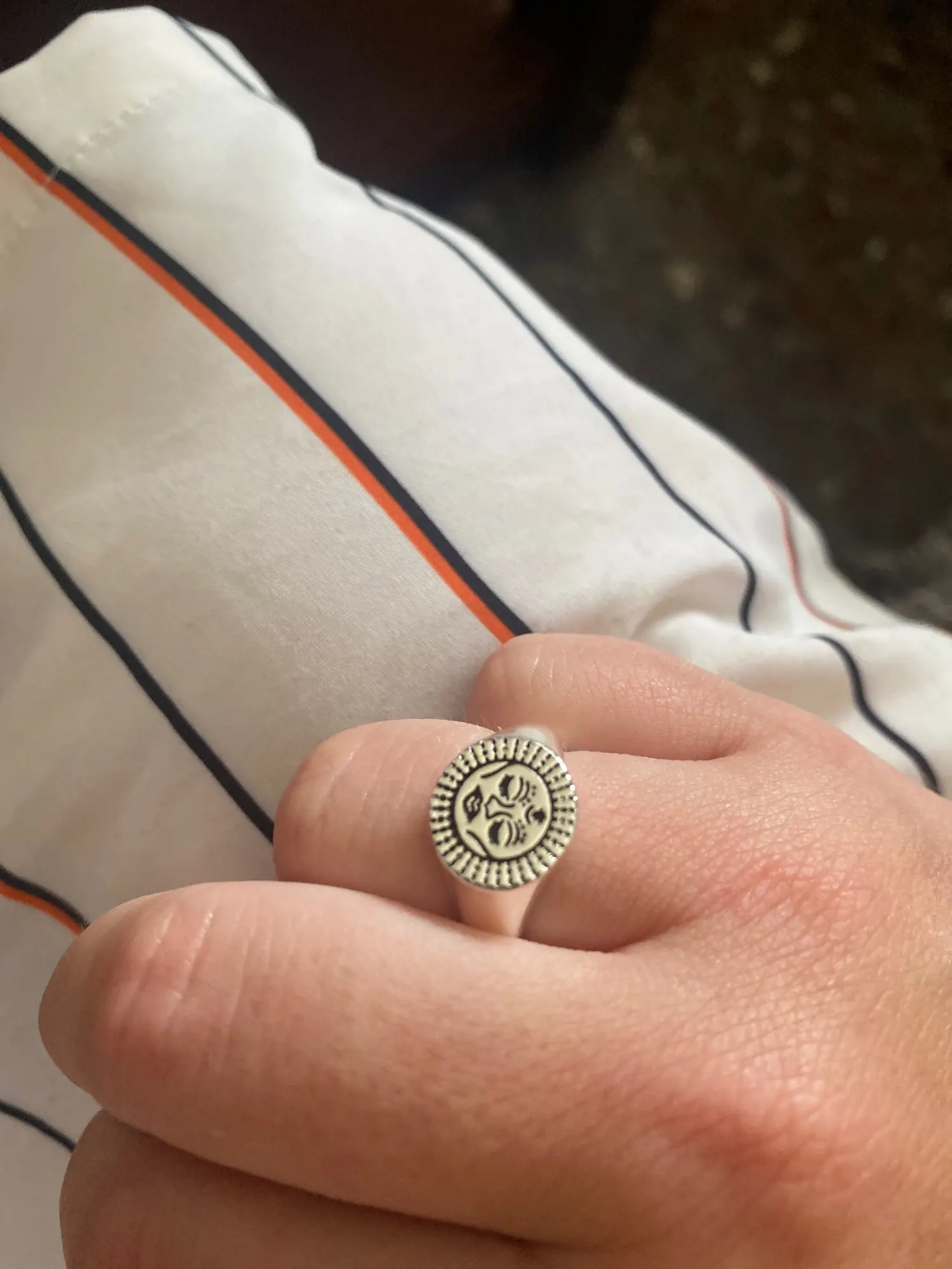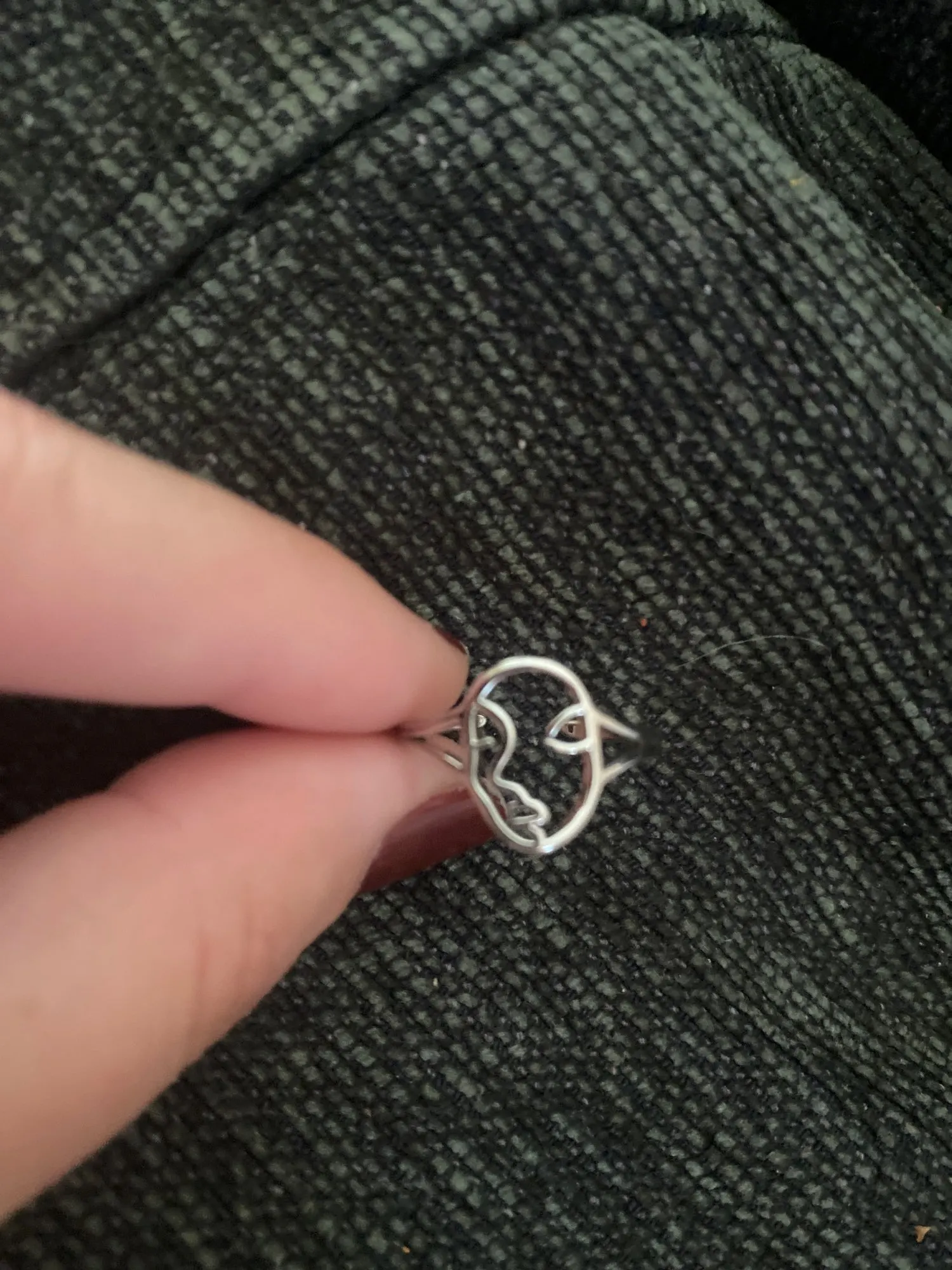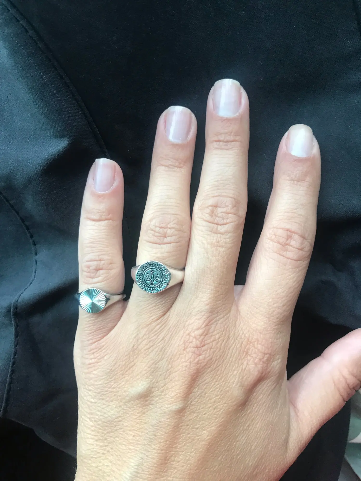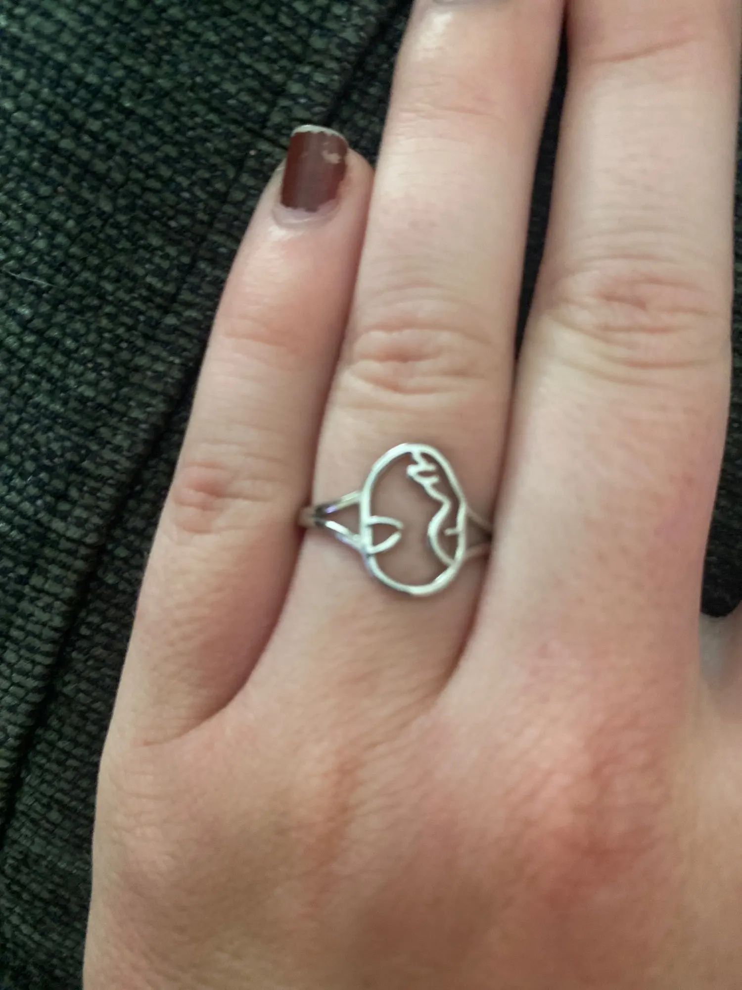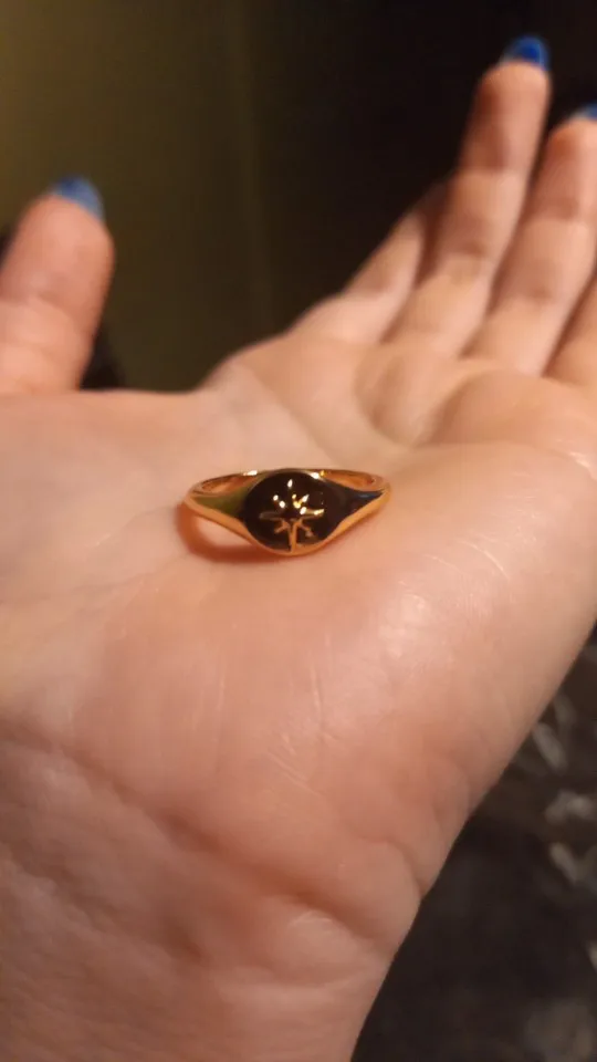 Довольно объемное кольцо и в ширину, и в толщину. Просто мне на безымянный немного большевато, а на остальные ещё маловато).. Хорошее, качественное и красивое кольцо, очень рада покупке!