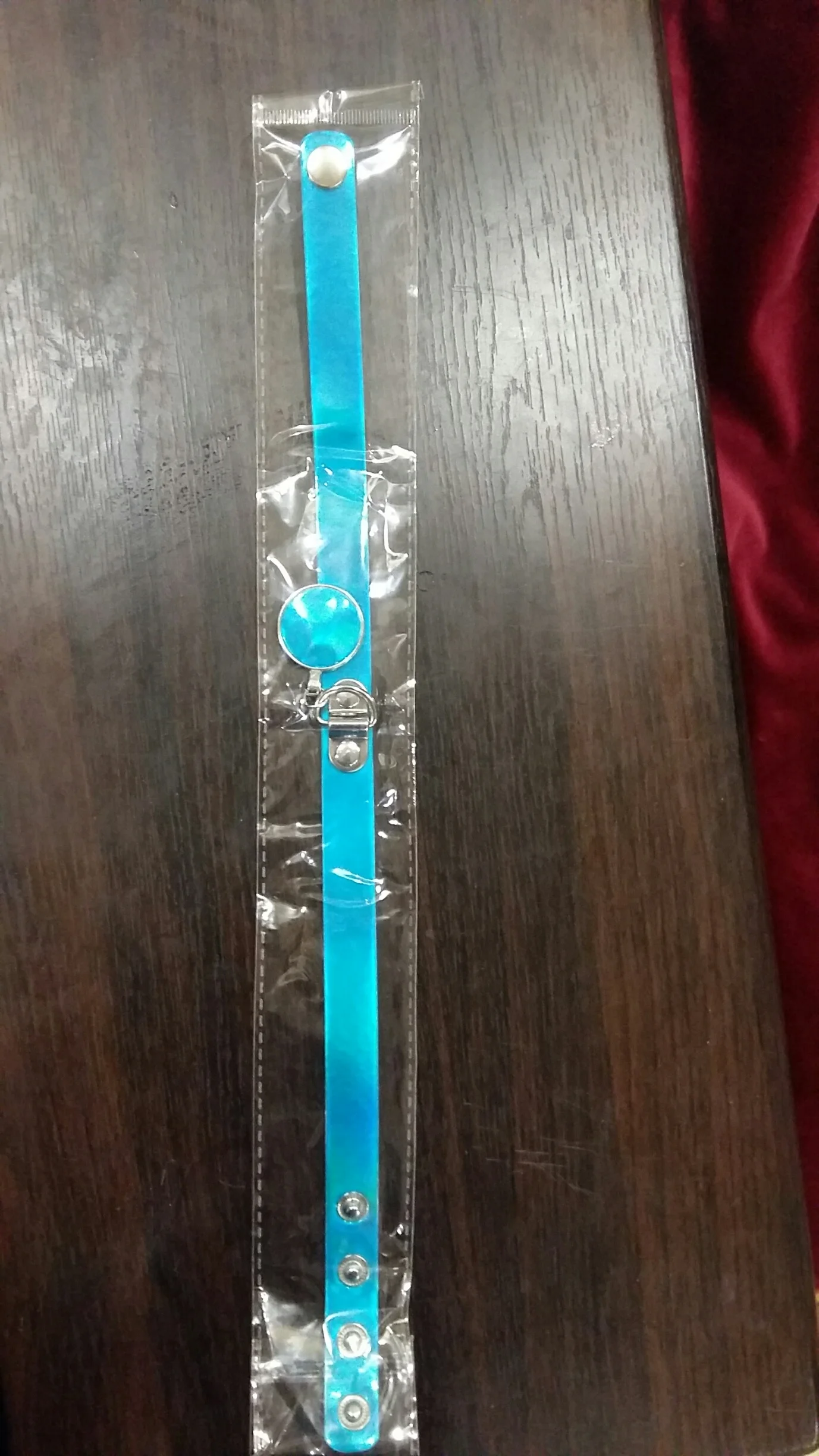 Покупала с купоном, красивые голаграфические чокеры. Доставка месяц, обтягивает шею в меру, можно отрегулировать.