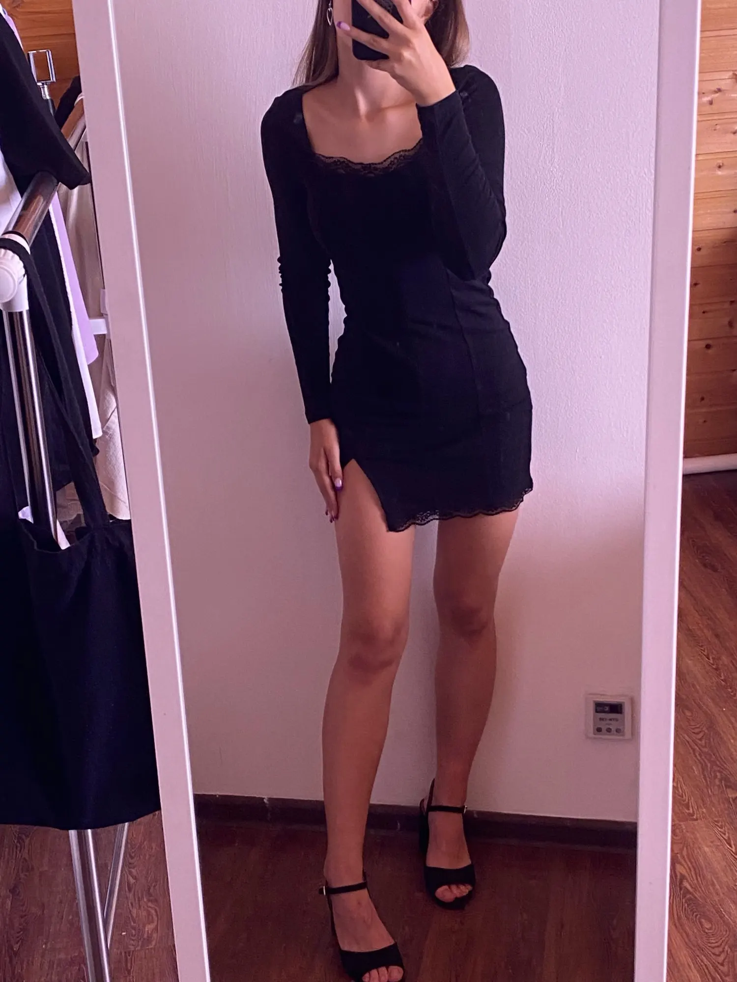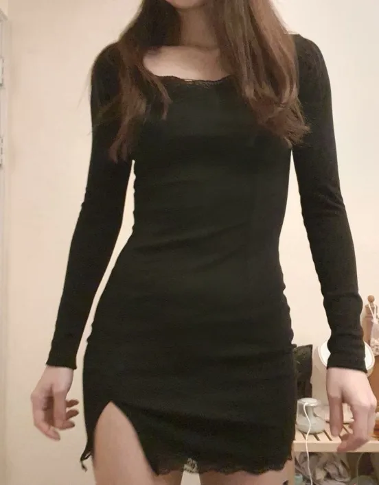 Женское кружевное мини-платье с длинным рукавом и разрезом