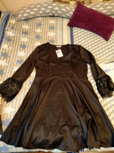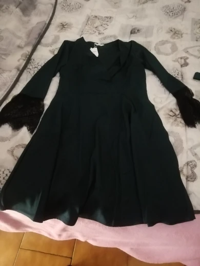 Ужасное платье ,просто ужасное!!! Во-первых,размер не соответсвует своей линейке ,на 46 заказала L,и оно так жмёт ,что просто кошмар!! Во-вторых ,что это за вырез на груди !??? Весь лифчик видно,куда в этом выйти ???!! В-третьих,это как я поняла галимая синтетика ,так так всё электризуется и так прилипает к телу ,просто капец ,не рекомендую ,на модели с картинки одно ,а на деле совсем другое!!!