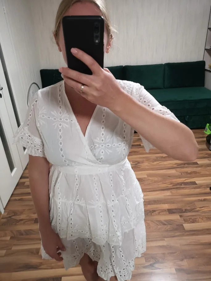 Платье так себе, немного просвечивает, коротковато на рост 168, пояс прямо под грудью