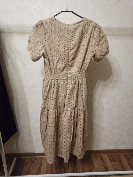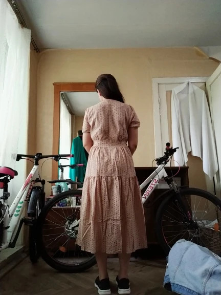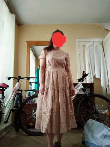 Неплохое платье, на ОТ 66 село хорошо, ещё максимум сантиметра 2 запас, дальше будет мало. Платье не такое объёмное как на фотографии продавца, за это снижаю звезду. Очень лёгкое, летом будет прекрасно. Смущает ещё отделка рукавов, цвет слегка отличается от изображения, но это зависит от освещения и цветопередачи монитора, поэтому претензий по этому поводу не предъявляю. Доставка очень быстрая