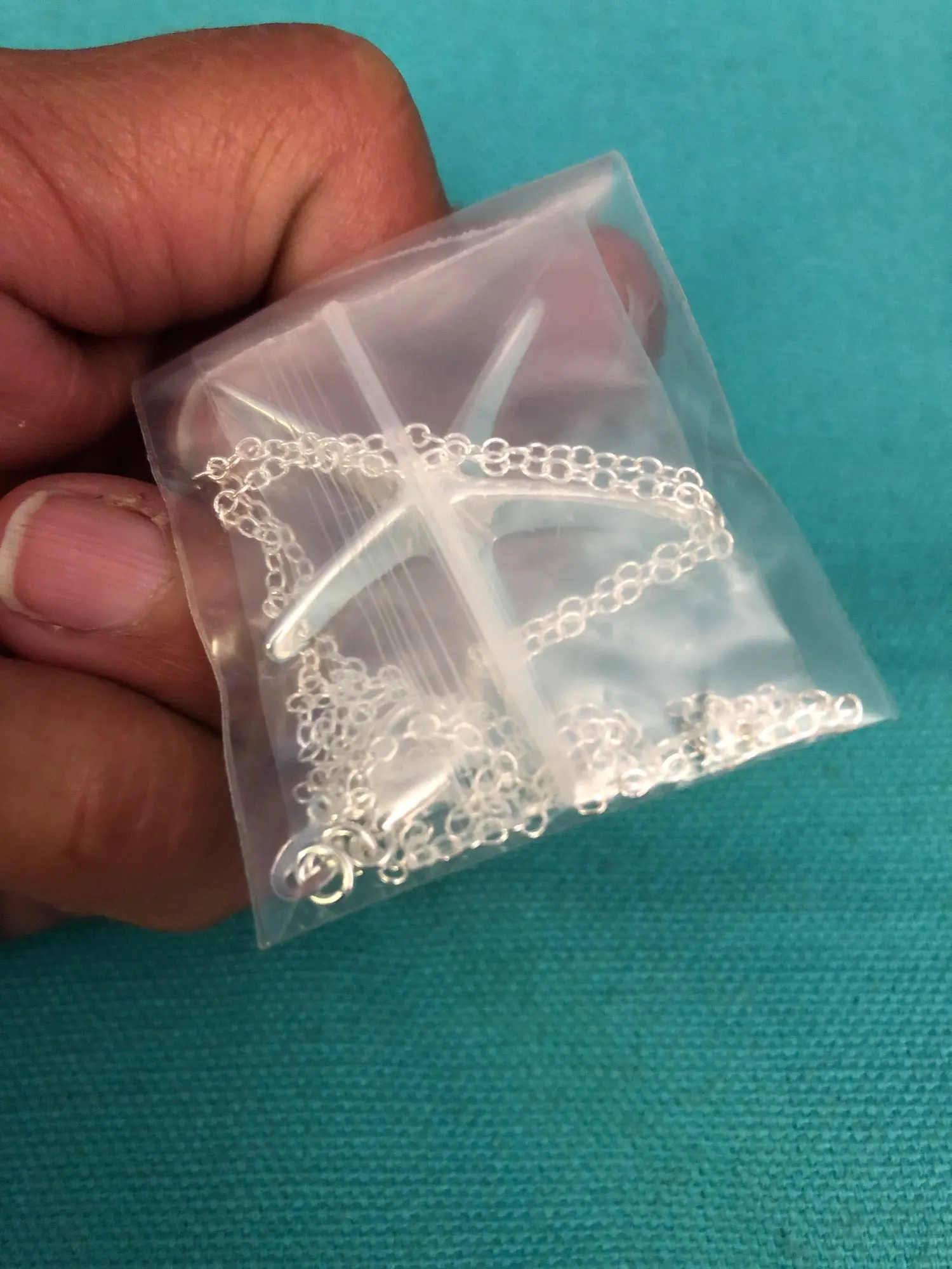 Кулон и цепочка упакованы хорошо, доставлены точно в срок, проба есть на изделии, но похоже на серебрение , цвет как будто 999 пробы очень белый, поэтому думаю, что бижу, симпатично смотрится.