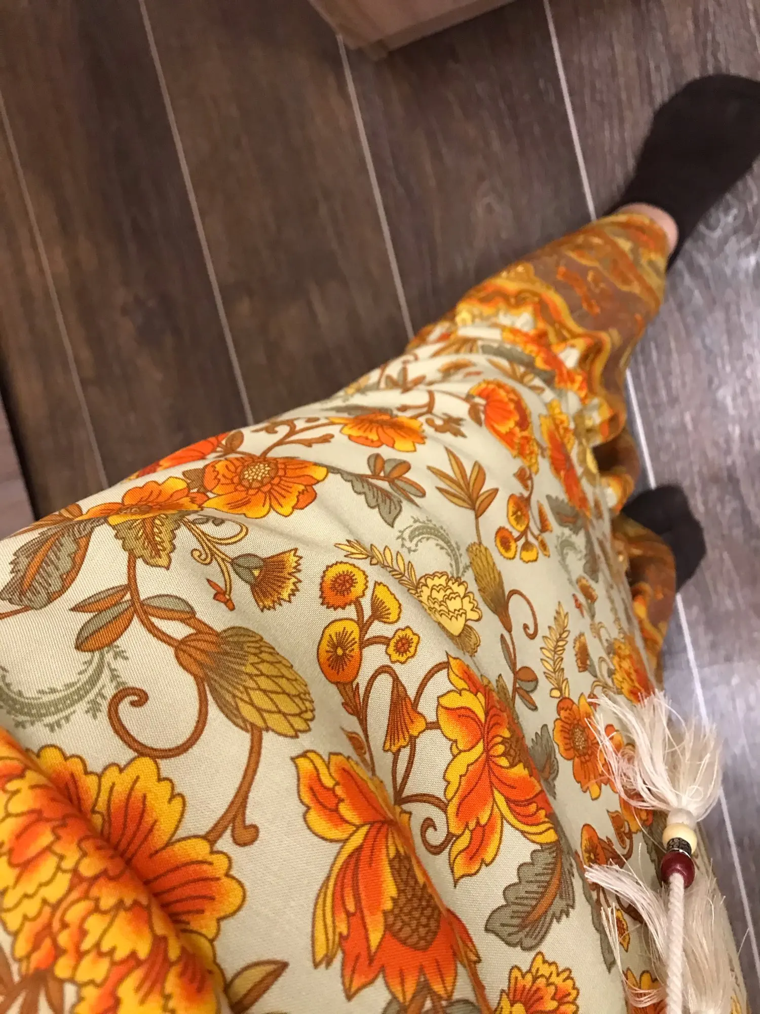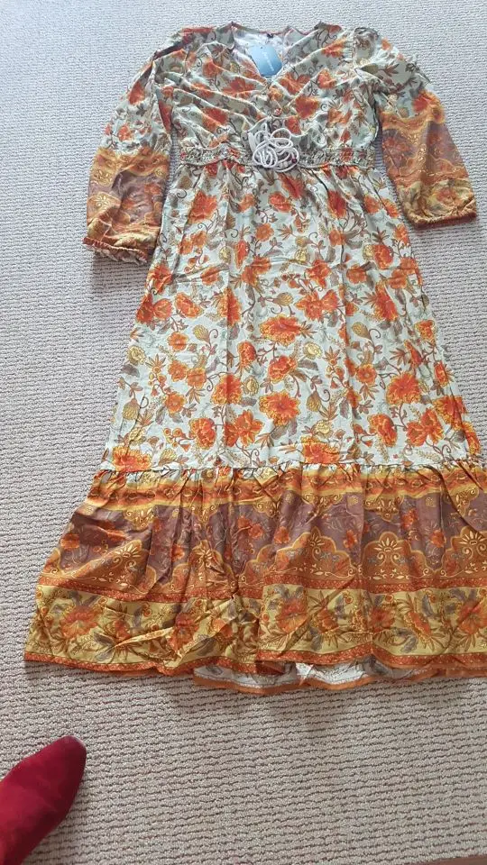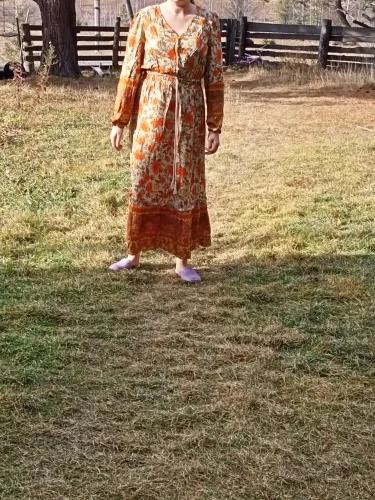 Женское платье-макси с длинным рукавом, бахромой и цветочным принтом