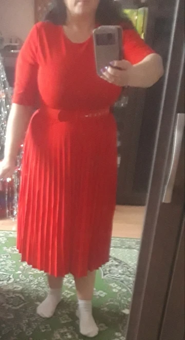 платье супер,как на фото.Взяла 3 XL, на российский 50.Вес 78кг,рост158см.Думаю синтетика,но приятная к телу,цвет яркий,насыщенный.Рекомендую.