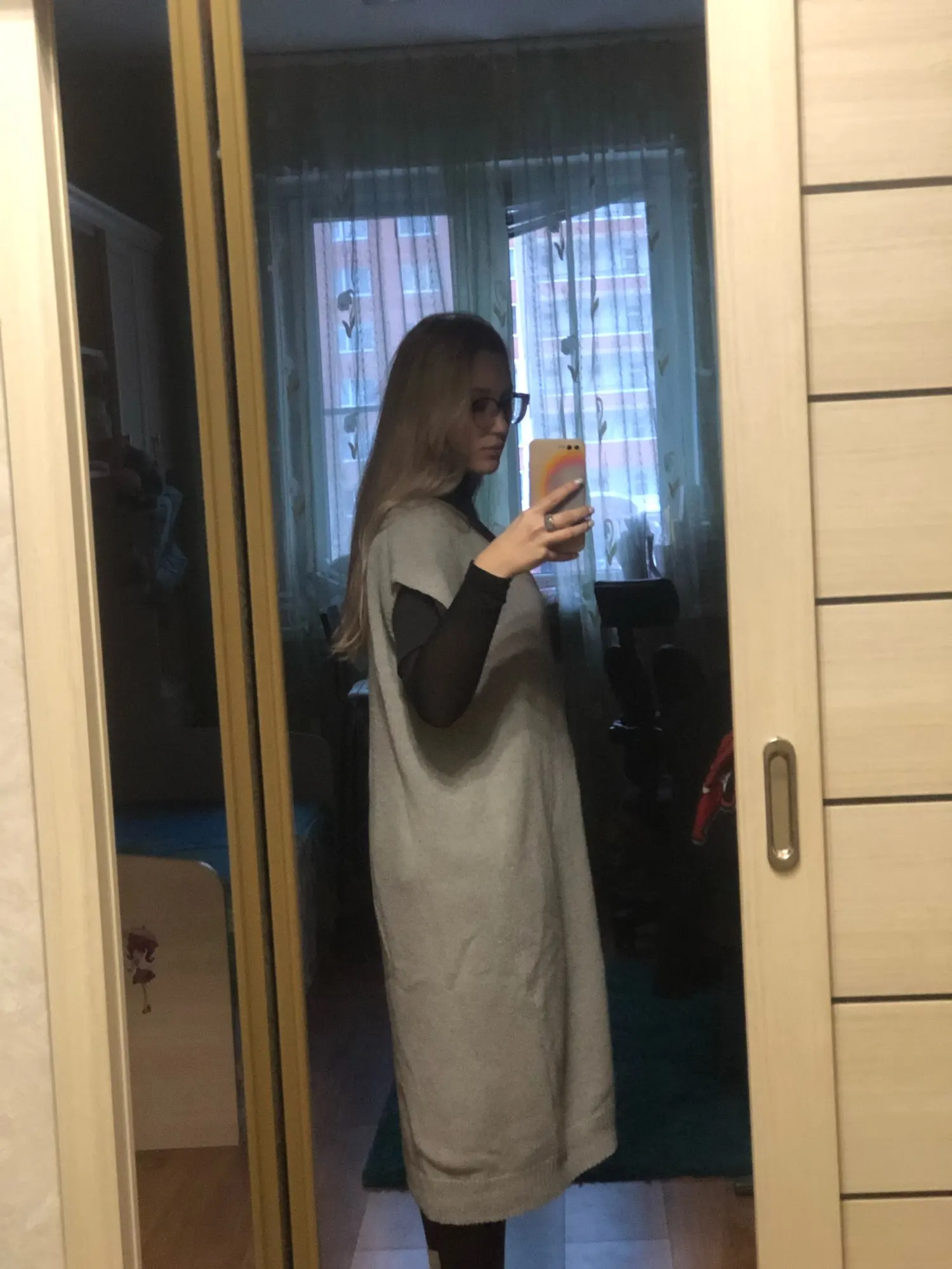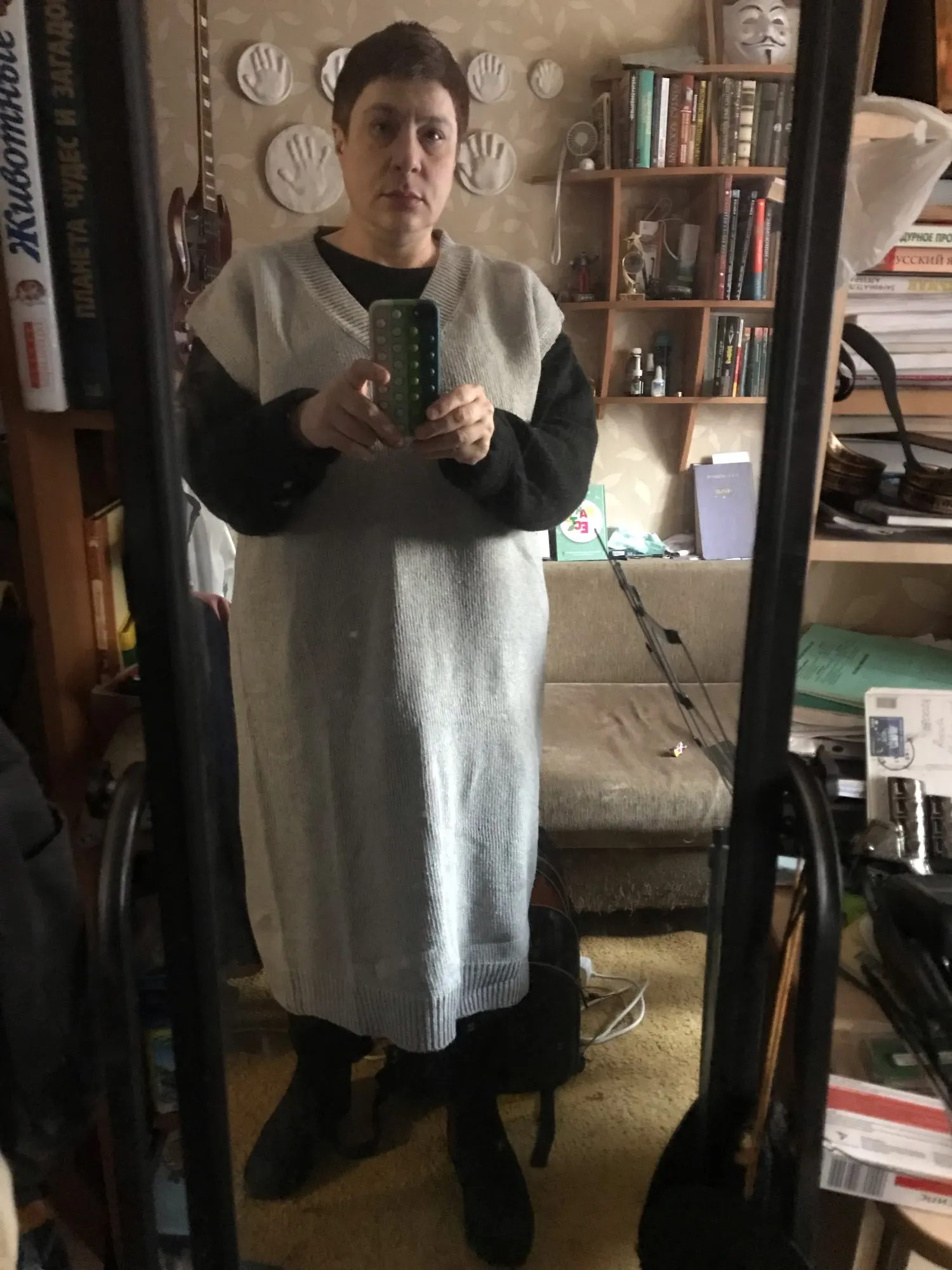 Сделан хорошо. Пришёл быстро. Очень плотный и тяжелый. Свободный, как и хотела. 112/98/110. Не знаю , если буду носить. Делает меня ещё крупнее. Не заказывайте на размер больше, т.к вязка плотная и он будет вас полнить.