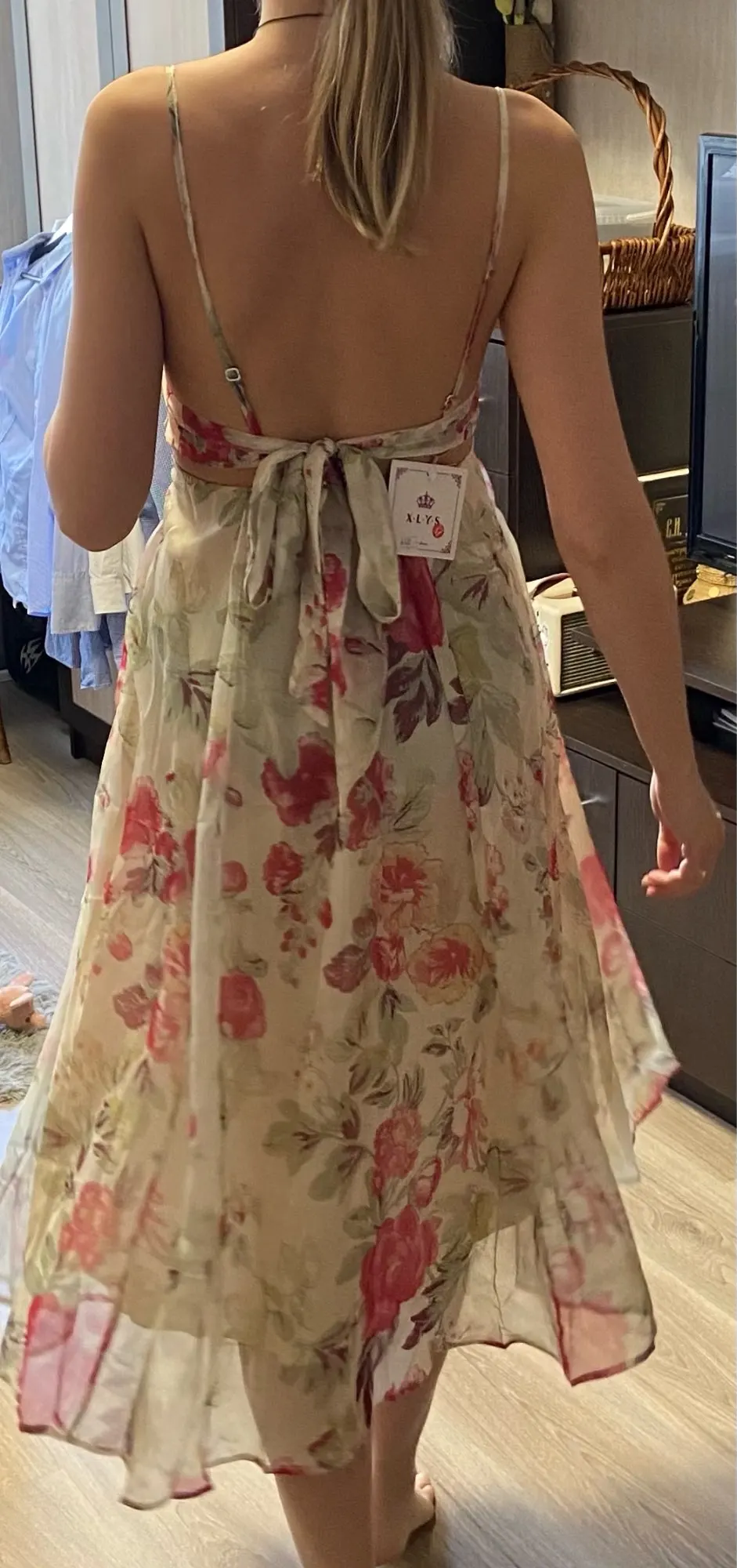 Женское пляжное платье в стиле богини для отдыха на море сексуальное платье с открытой спиной без бретелек с бантом платье-трапеция с супер сказочным принтом Y753