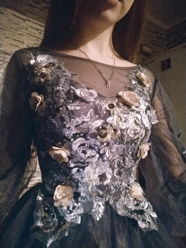 Платье красивое. Немного выше талия и не в пол. Немного широковатое, шнуровать нечего, можно молнию вшивать. Скорее всего, рост 164 и полнота не наша. Выглядит хорошо, для юной девочки наверное даже удобнее, что не до пола. (брали на сцену)