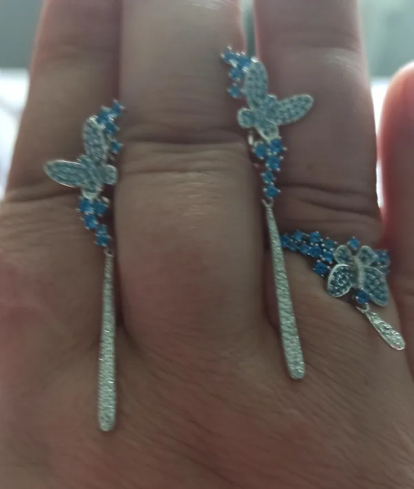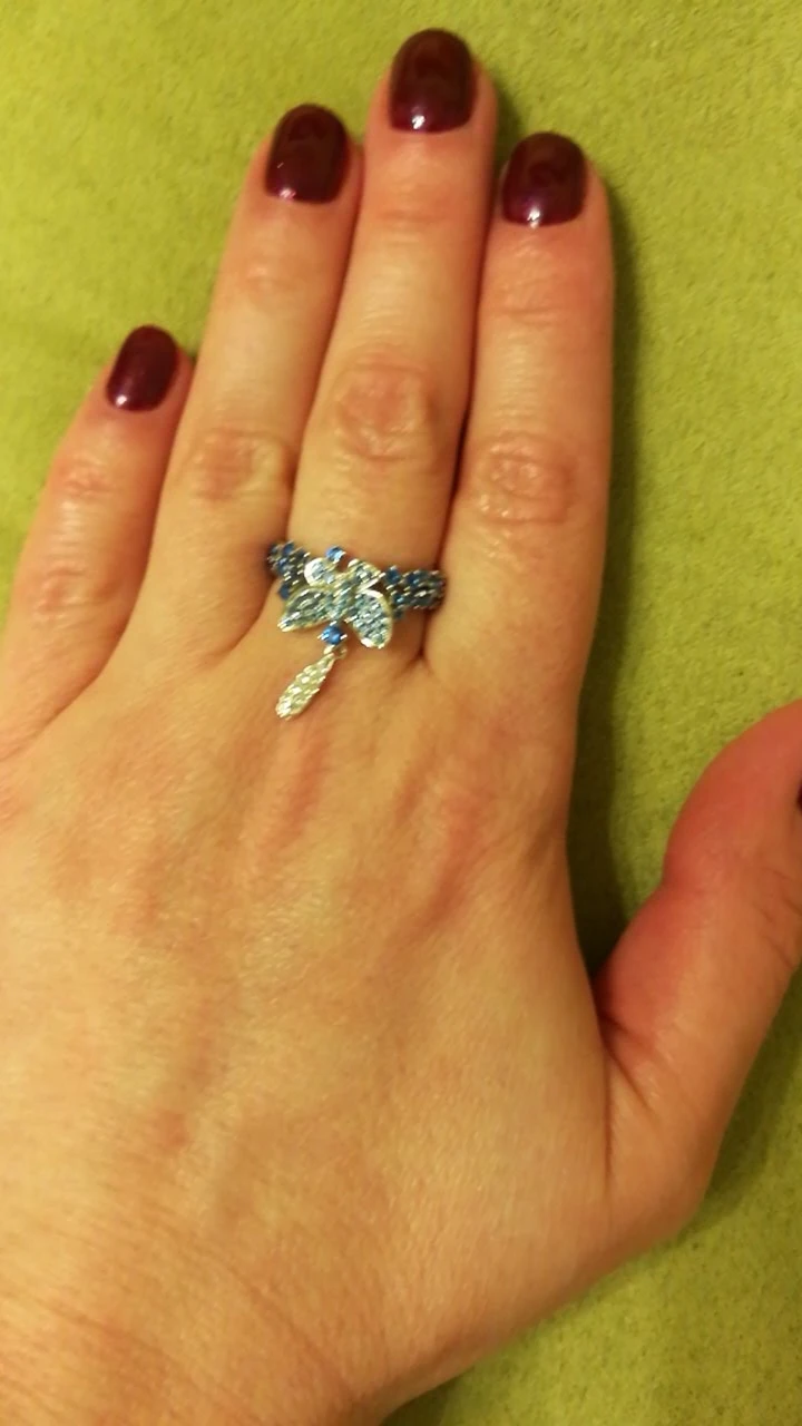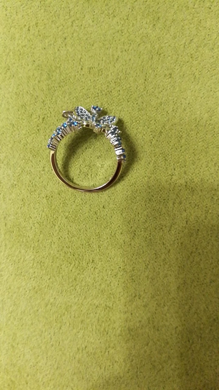 Женское Винтажное кольцо из серебра 925 пробы с голубой бабочкой