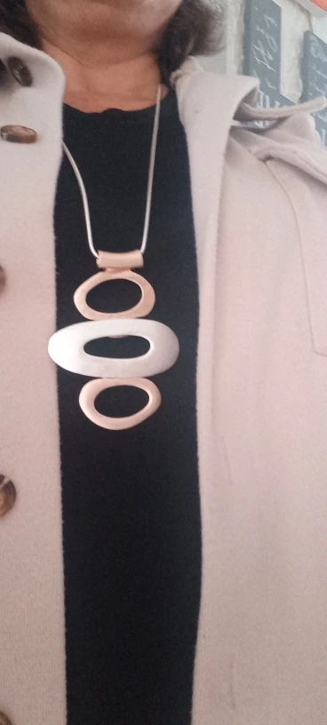 Очень красивое! Соответствует описанию полностью. Длинная цепочка. Крупное украшение, но дизайн очень стильный и лаконичный. Я довольна. Единственный минус - очень долгая доставка.