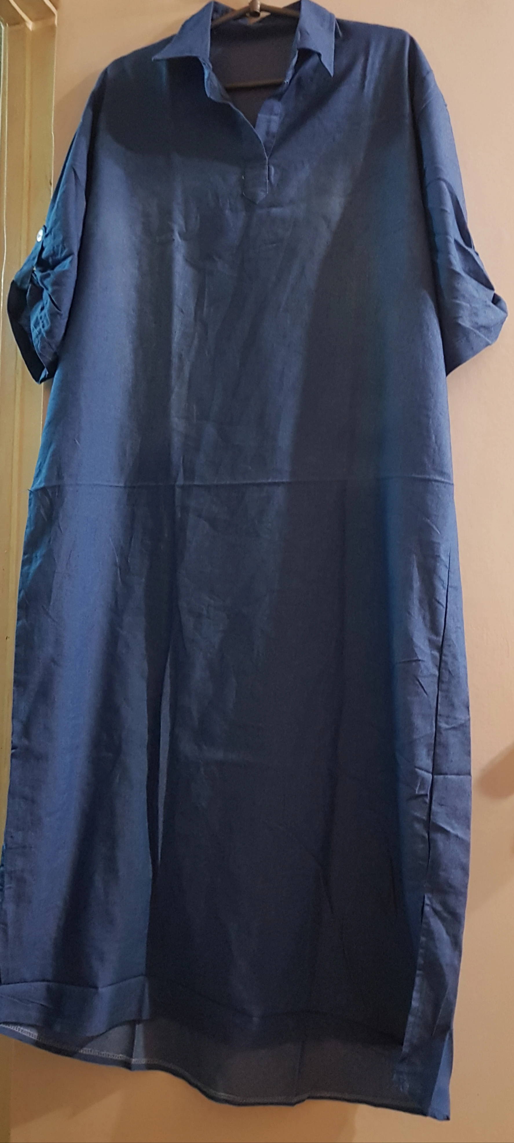 Женское винтажное платье размера плюс, Летнее Длинное свободное джинсовое платье с v-образным вырезом, рукавом до локтя, разрезом по бокам и ...