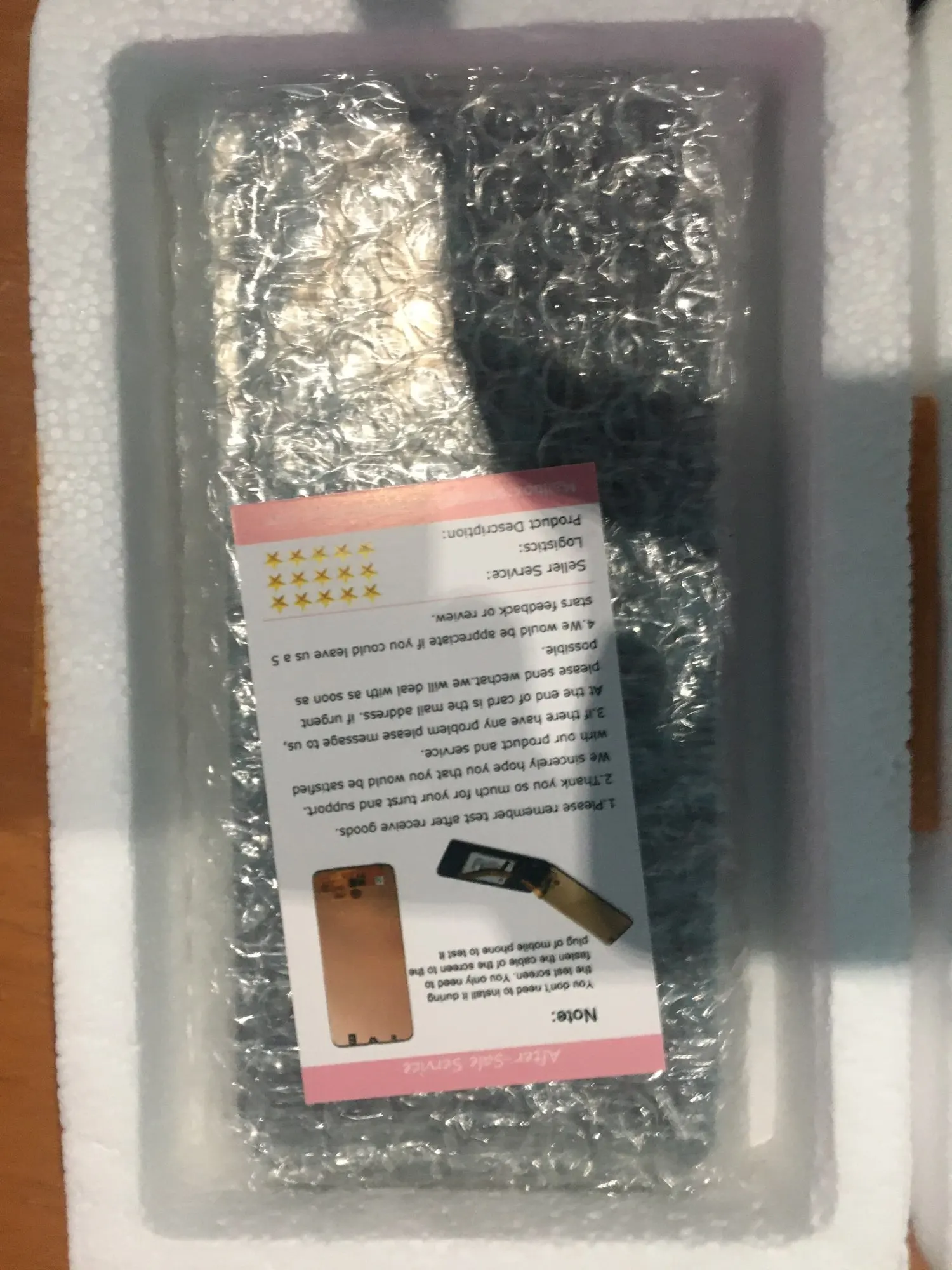 Товар шел до Кызылординской области (Республика Казахстан) около месяца. Заказ продавец отправил очень быстро. Упакован дисплей очень хорошо. Продавец не пожалел пенопласта и пупырчатой плёнки. Сам товар качественный, видно, что не паленая конторка из подвала его делала. Однако, снизу экрана при включении видно два засвета от диодов (на работу не влияет, но ощущение портится). Также в комплекте с инструментами для извлечения старого экрана не хватает клея или клеевой основы для крепления мягонькой платы под клавиши громкости. В комплекте шел какой-то материал с односторонним клеевым покрытием, однако, назначение его я так и не понял. Аккумулятор соответственно я также не смог приклеить комплектными средствами - пришлось изголяться. Ну и качество комплектующих для разборки оставляет желать лучшего, можно сказать они одноразовые (на это наверное и расчёт). Однако, товаром доволен, все пять звёзд поставил. Рекомендую продавца. Но лучше, товарищи, не разбиваете экраны.