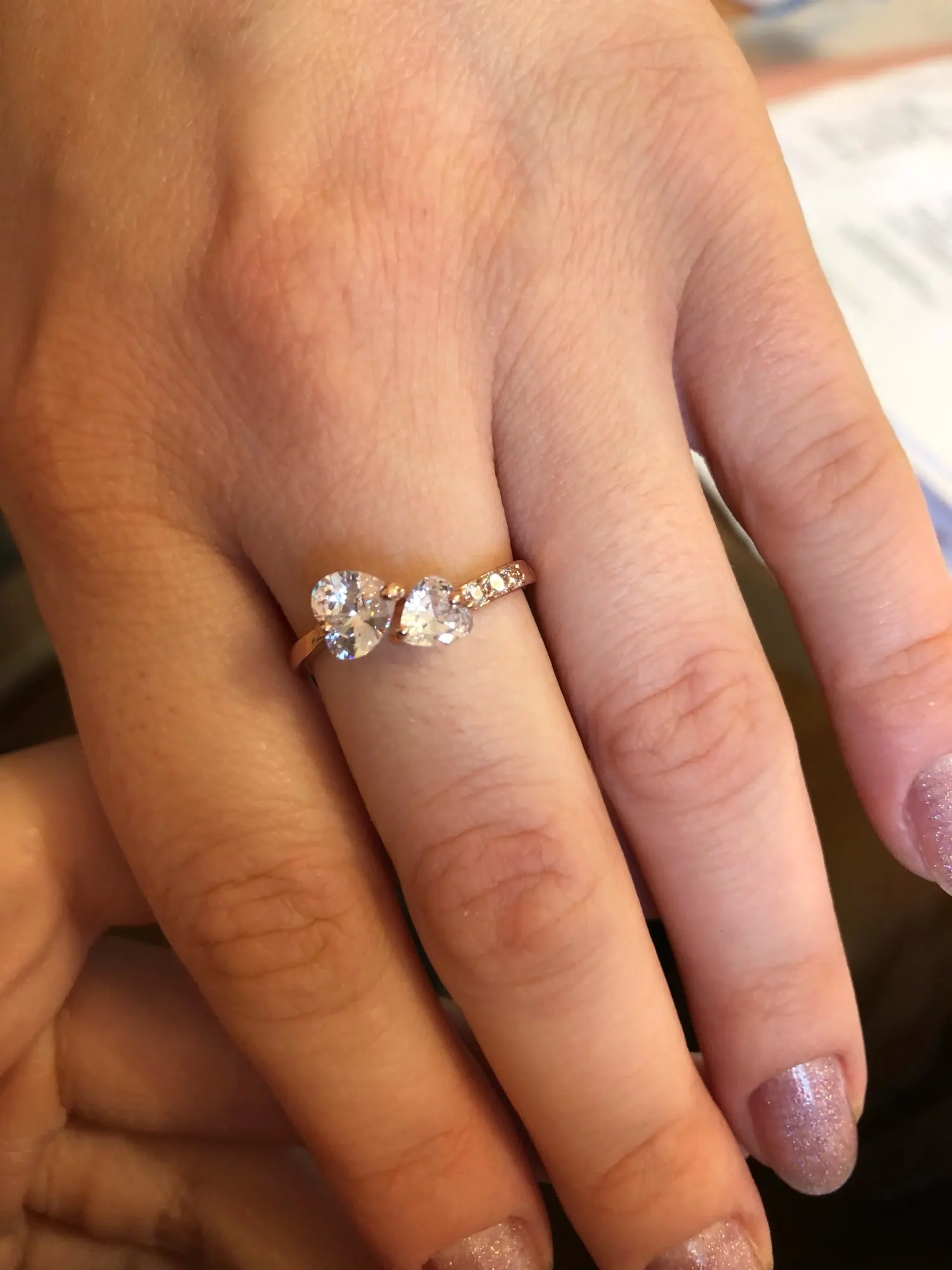 ZHOUYANG Регулируемые кольца для женщин двойное сердце циркон 3 цвета Открытое кольцо предложение свадебный подарок модные ювелирные изделия KAR353