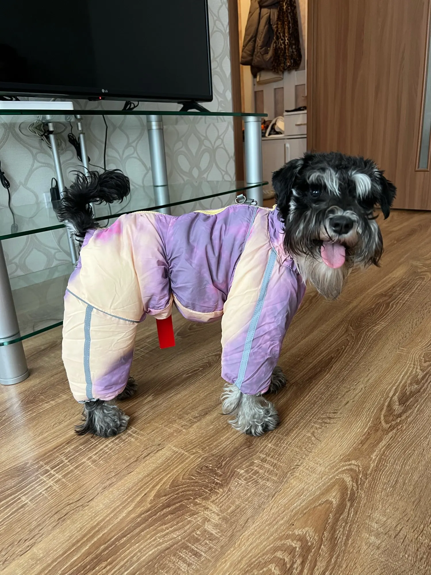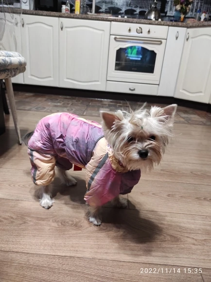 Хороший комбинезон для девочек . Беру уже второй в новом цвете . Внутри мягкий утеплитель , материал не продувается . Собака после прогулки всегда тепленькая. Очень довольна . Размер соответствует размерной сетке. Буду заказывать ещё . Рекомендую