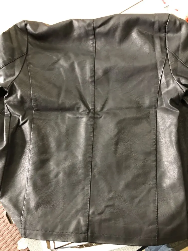 Спасибо.Хорошая куртка на большой размер.Внутри есть вместительный карман.Материал -приятный кожзам.