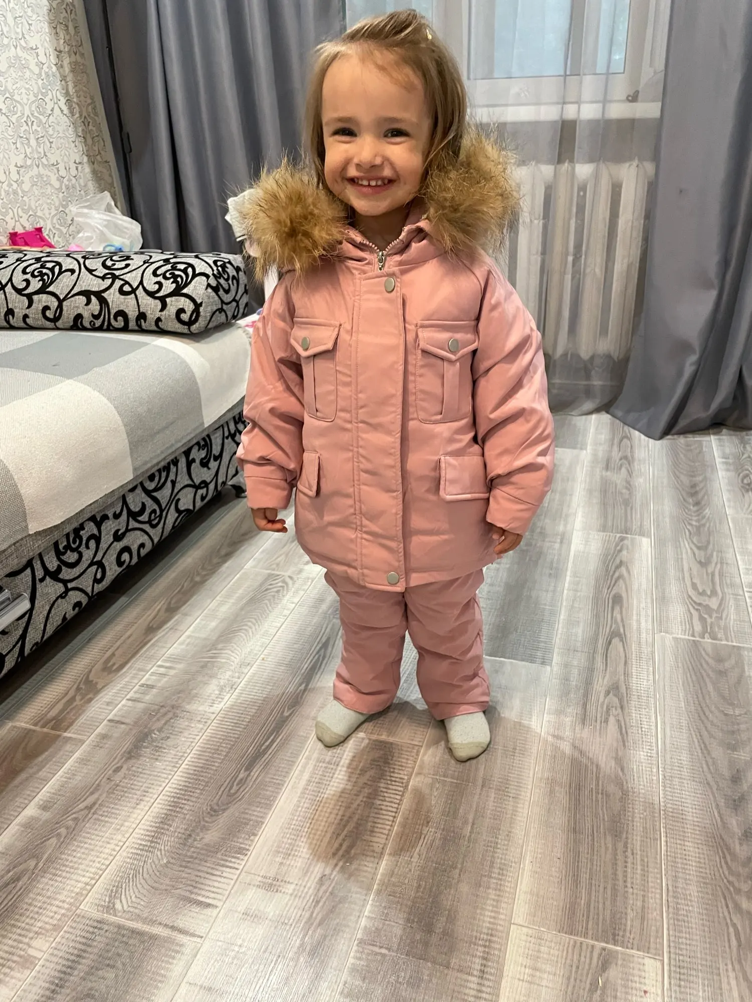 супер,единственное что мы сделали это сменили мех на чисто черный и он конечно попушистее,чем тот что нам пришел,а так качество великолепное,на 4 года подошел размер 4,все как надо,сейчас буду заказывать второму внуку на маленький размер магазин рекомендую однозначно