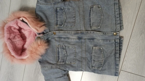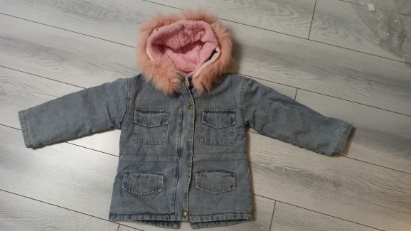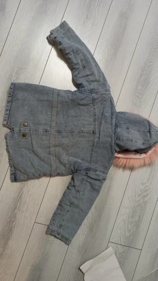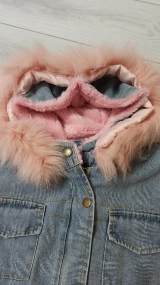 Зимняя утепленная джинсовая куртка для маленьких девочек, меховая верхняя одежда с капюшоном для маленьких девочек, джинсовая куртка, хлопковая детская парка для девочек