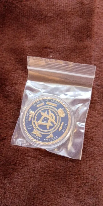 Золотая монета Европейского масонского братства, Золотая и синяя круглая двойная памятная монета