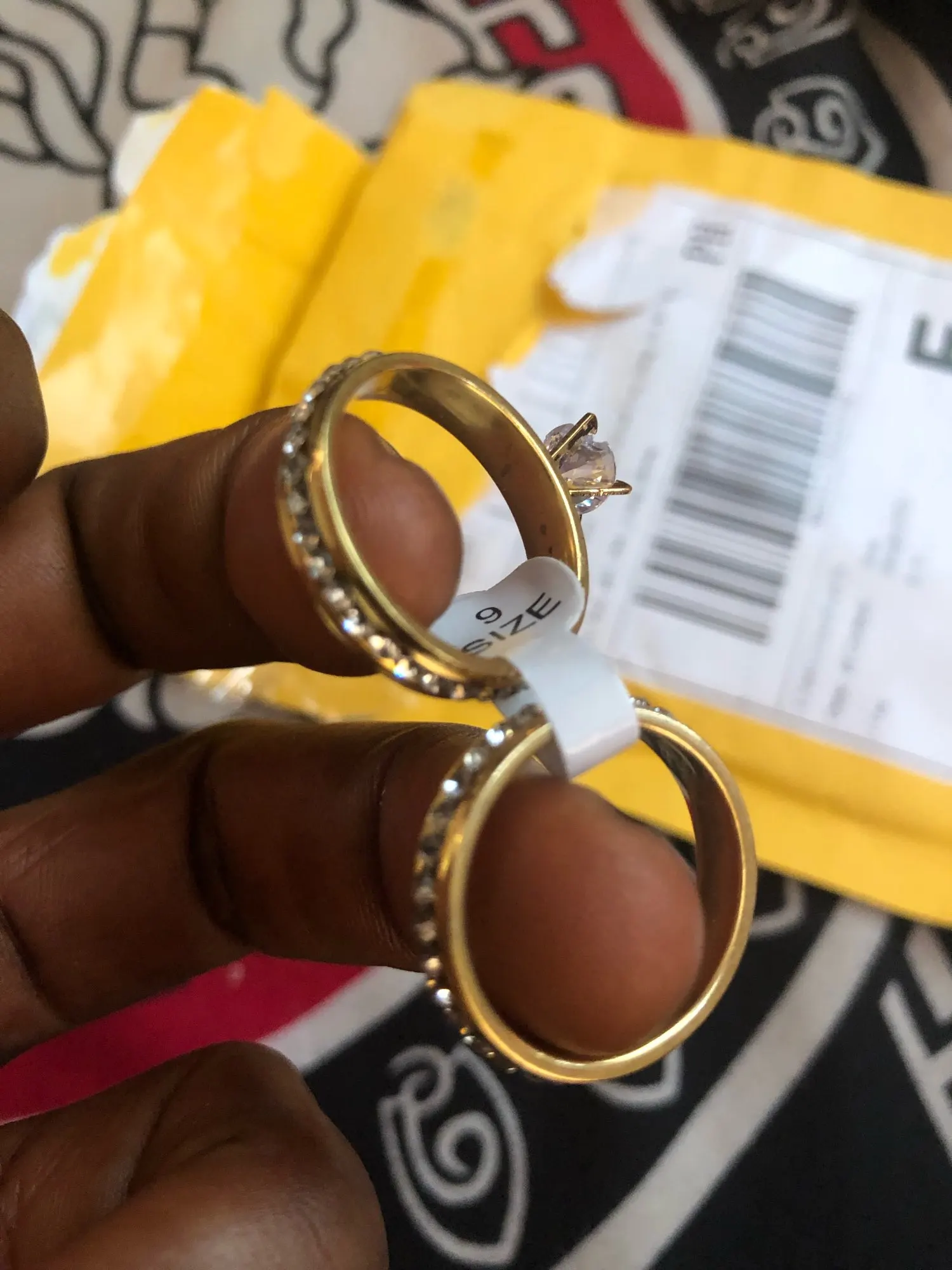 Качество отличное, пришли быстро, заказывал 6 размер, НО кольцо даже на мезинец не налазиет... Хотя другие кольца 6размера нормально подходили