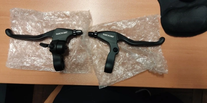 Доставка в Украину 14 дней. Товар соответствует описанию, всё как на фото (брал вариант без звонка за $12,32, продван оценил посылку в 8 баксов). Тормозные ручки сделаны весьма добротно, можно смело покупать. Они даже лучше чем аналогичные тектро. Тяга рассчитана под головку тросика - цилиндр (бочка).